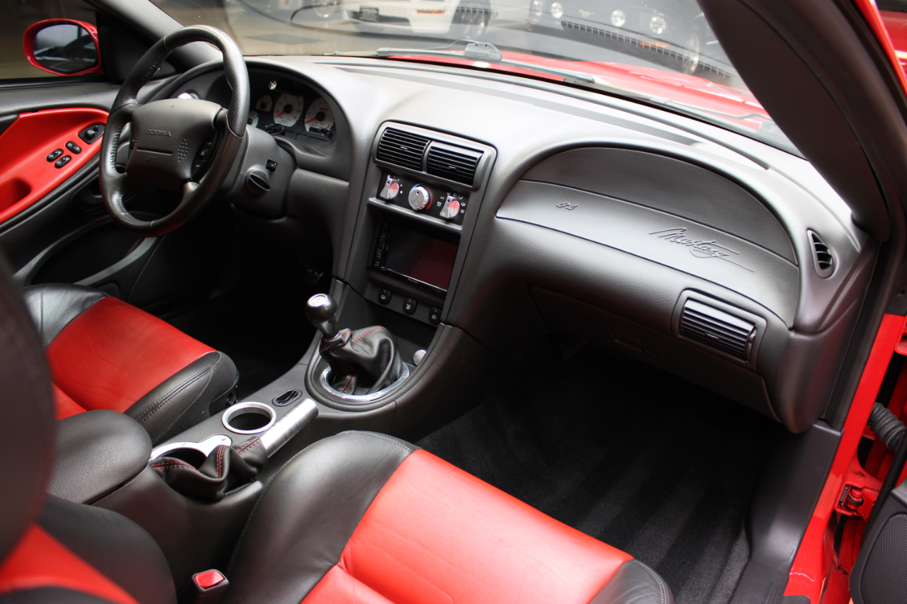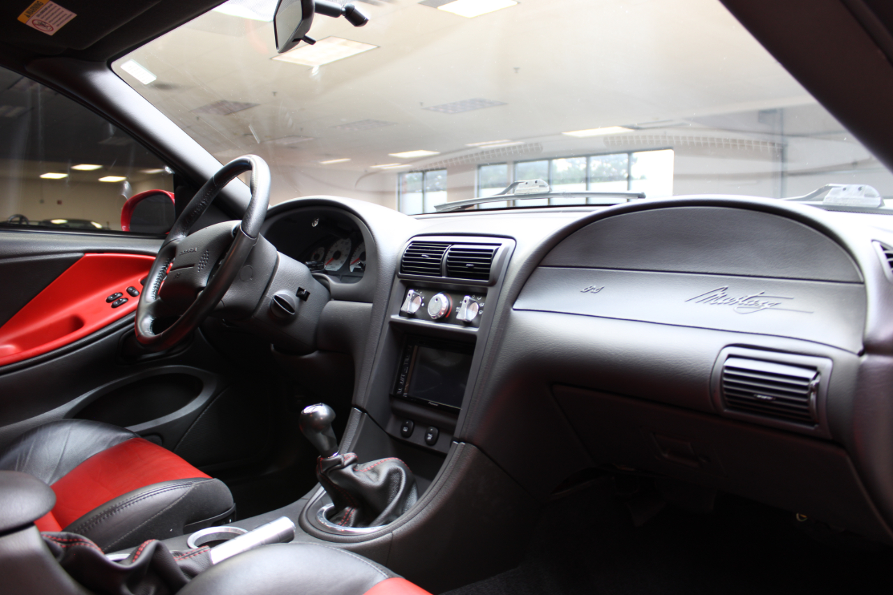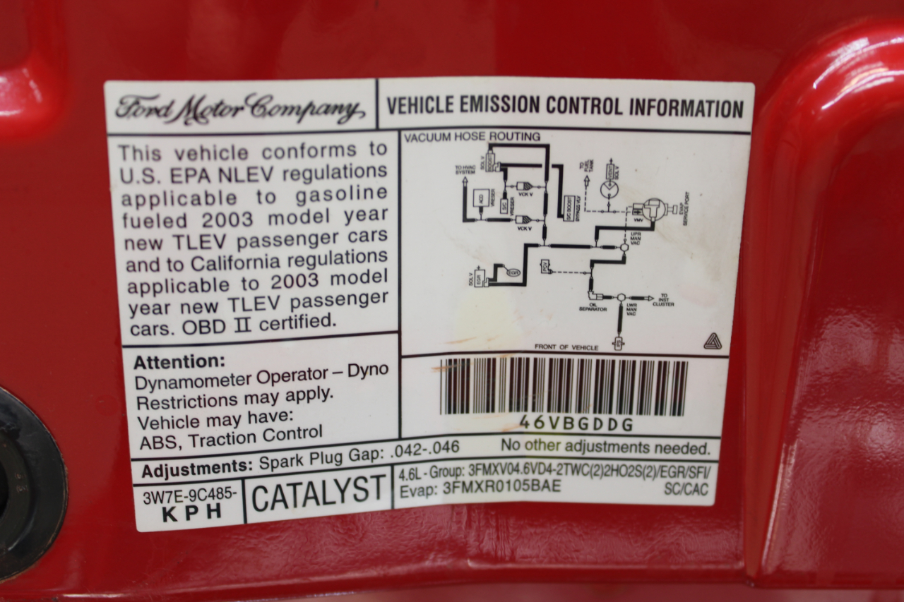 Get ready to rev your engines in this vibrant Red 2003 Ford Mustang! This sleek ride not only offers a thrilling driving experience, but also provides peace of mind with its available Carfax report. The Mustang's sporty exterior is enhanced by its alloy wheels, fog lights, and rear spoiler, making it a head-turner on the road. Step inside to find comfortable leather seats that are perfect for long drives, along with a leather steering wheel that feels great in your hands. With an AM/FM radio, CD player, and subwoofer, you can enjoy your favorite tunes on the go. Power windows and power adjustable exterior mirrors add convenience to your driving experience. Whether you're cruising down the highway or navigating city streets, this Mustang offers a dynamic driving experience with its powerful engine and smooth handling. Don't miss out on the opportunity to own this fantastic 2003 Ford Mustang - it's a true gem that will bring excitement to every drive!