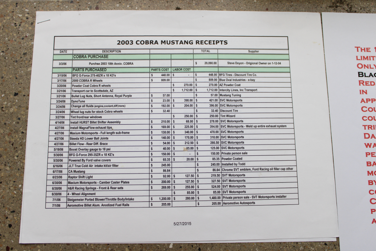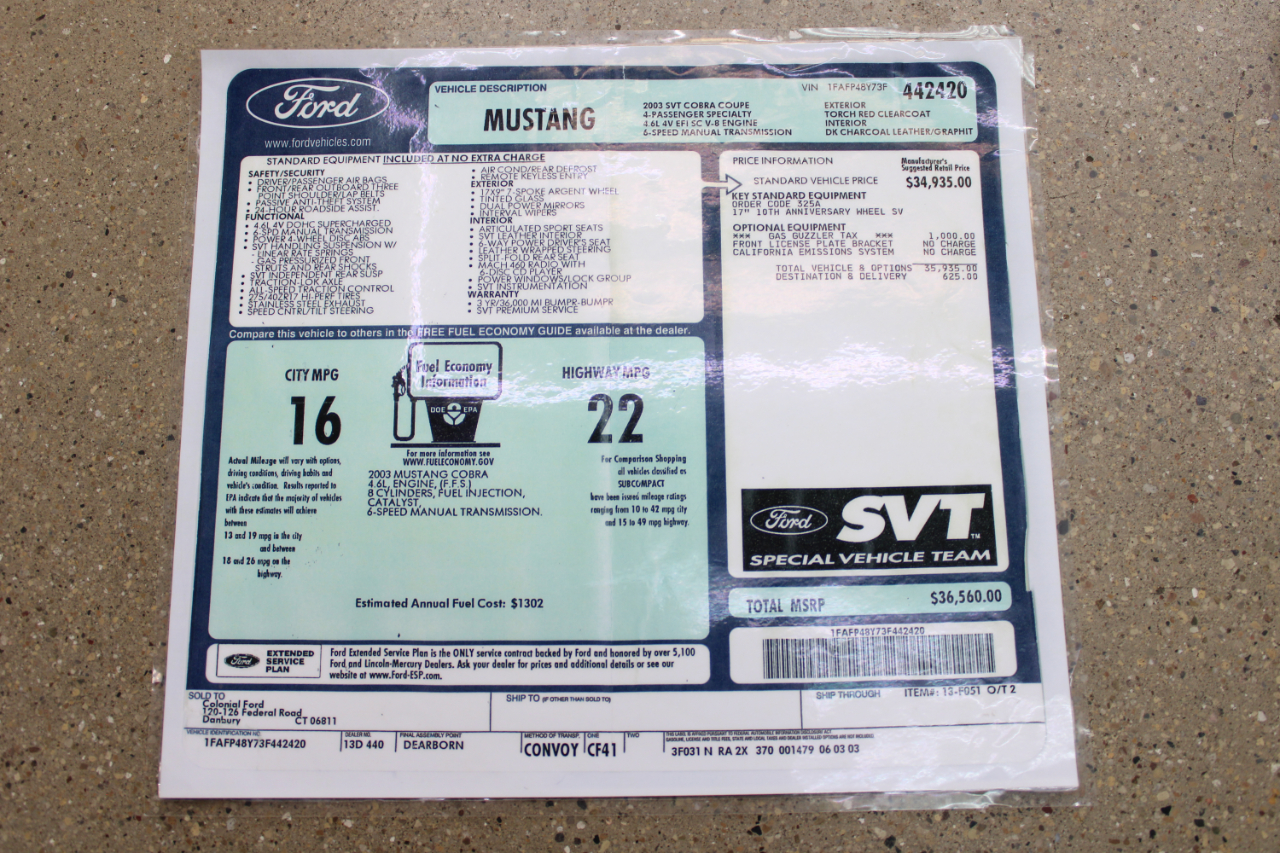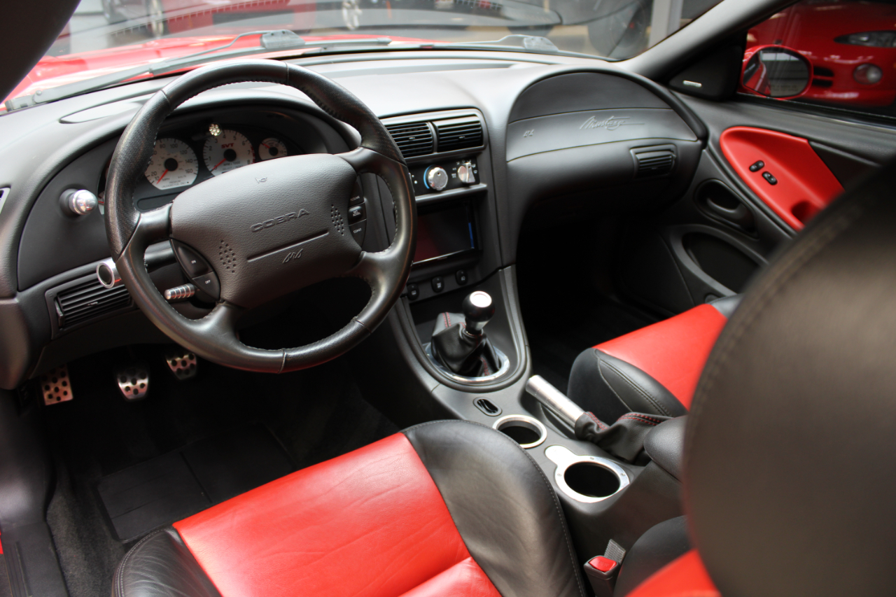Get ready to rev your engines in this vibrant Red 2003 Ford Mustang! This sleek ride not only offers a thrilling driving experience, but also provides peace of mind with its available Carfax report. The Mustang's sporty exterior is enhanced by its alloy wheels, fog lights, and rear spoiler, making it a head-turner on the road. Step inside to find comfortable leather seats that are perfect for long drives, along with a leather steering wheel that feels great in your hands. With an AM/FM radio, CD player, and subwoofer, you can enjoy your favorite tunes on the go. Power windows and power adjustable exterior mirrors add convenience to your driving experience. Whether you're cruising down the highway or navigating city streets, this Mustang offers a dynamic driving experience with its powerful engine and smooth handling. Don't miss out on the opportunity to own this fantastic 2003 Ford Mustang - it's a true gem that will bring excitement to every drive!